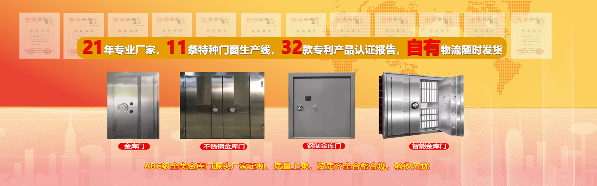 特種門廠家專業生產文物庫房門,銀行金庫門,私人密室門,不銹鋼金庫門,移動金庫,金庫門的廠家,是為金融證劵、國防軍工、石油化工、核能電力、黃金珠寶、博物館等單位提供安全防范設備的專業生產廠家;公司一貫堅持以科技開發為先導,在ISO9000質量處理體系覆蓋下,結合二十年來專業經驗,為各工作安全價值前進,供給產品解決方案。公司生產設備有:M級金庫門、A級金庫門、B級金庫門、C級金庫門、金庫門中門、防水金庫門、保管箱、組合金庫、微型金庫、防盜門、銀廳防護門、ATM防護艙、出入口防彈聯動互鎖通道、防跟從聯... 【了解更多】